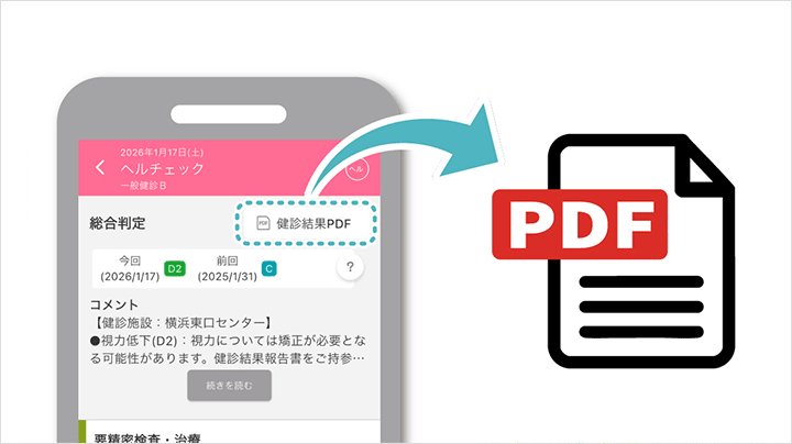 2026年4月以降、アプリ利用開始時の受診分から健診結果PDFをご覧いただけます。